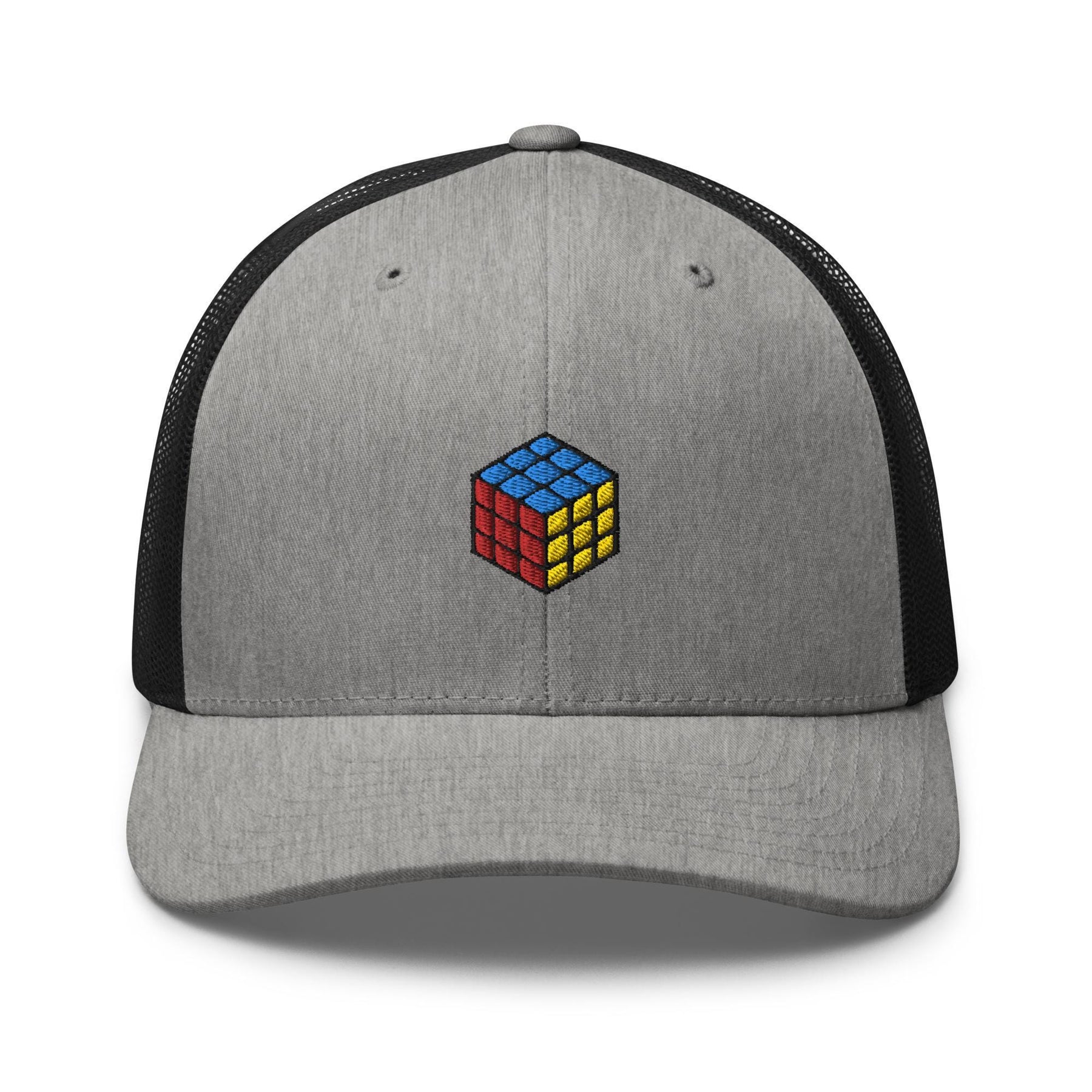 a gray trucker hat with a rubik rubik rubik rubik rub