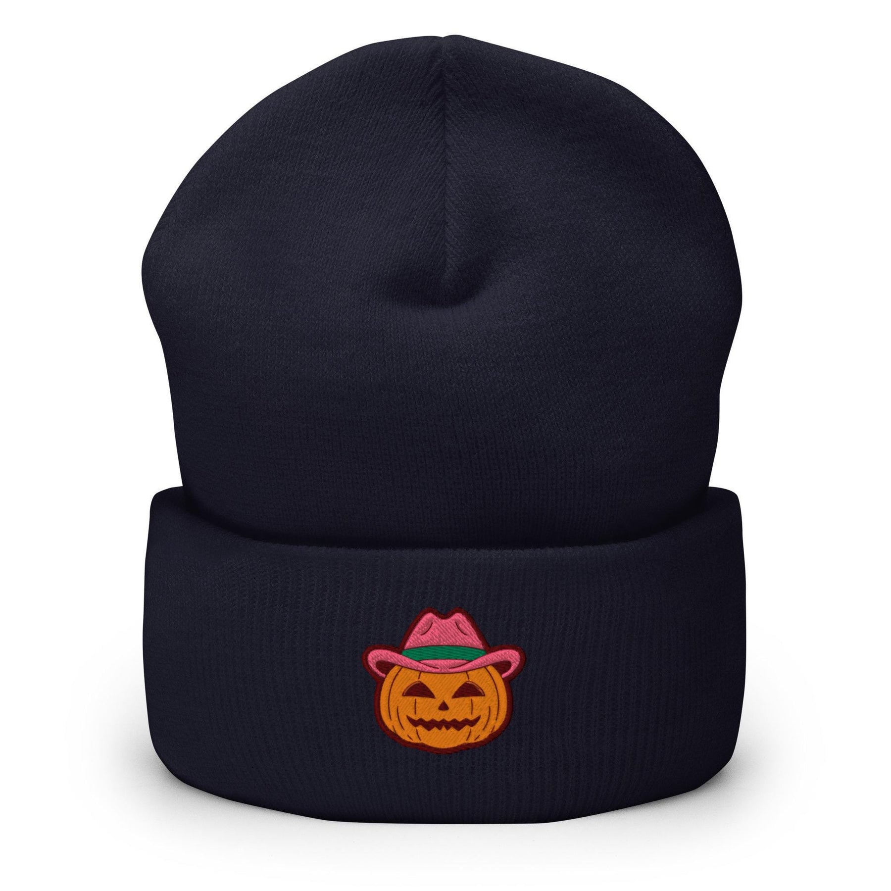 a black hat with a pumpkin on it